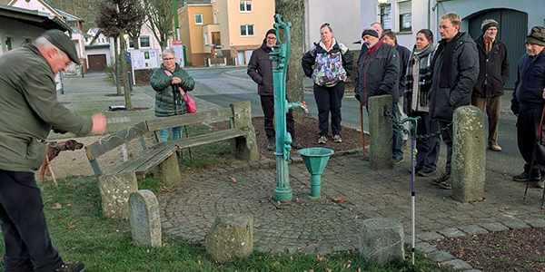 Zusammen mit dem Verschönerungsverein und dem Arbeitskreis Dorfgeschichte hatten wir öffentlich zum ersten Niedererbacher (Teil-) Grenzbegang eingeladen und konnten insgesamt 42 Interessierte begrüßen. Bei trockenem, spät-winterlichem Wetter und unter fach- und ortskundiger Leitung von Bernd Müller erwanderten die Teilnehmer in rund drei Stunden eine Strecke von ca. 11 km und erfuhren Interessantes über die Standorte von Grenzsteinen, ihre Bedeutung, die Grenzverläufe in der rund fünf Quadratkilometer großen Gemarkung Niedererbach, die Bedeutung der Bahnlinie für den Ort, die heute stillgelegten Schieferbergwerke sowie über die wechselvollen Herrschaftsverhältnisse in den letzten 500 Jahren, aber auch über noch sichtbare Reste keltischer Besiedlung.
